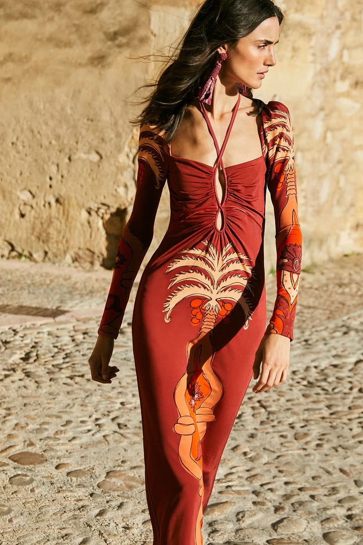 Designers like Zimmermann, Ulla Johnson, Etro, and Chloé are redefining modern femininity through earthy luxury, where terracotta, ochre, and clay become symbols of balance and grounded beauty.
